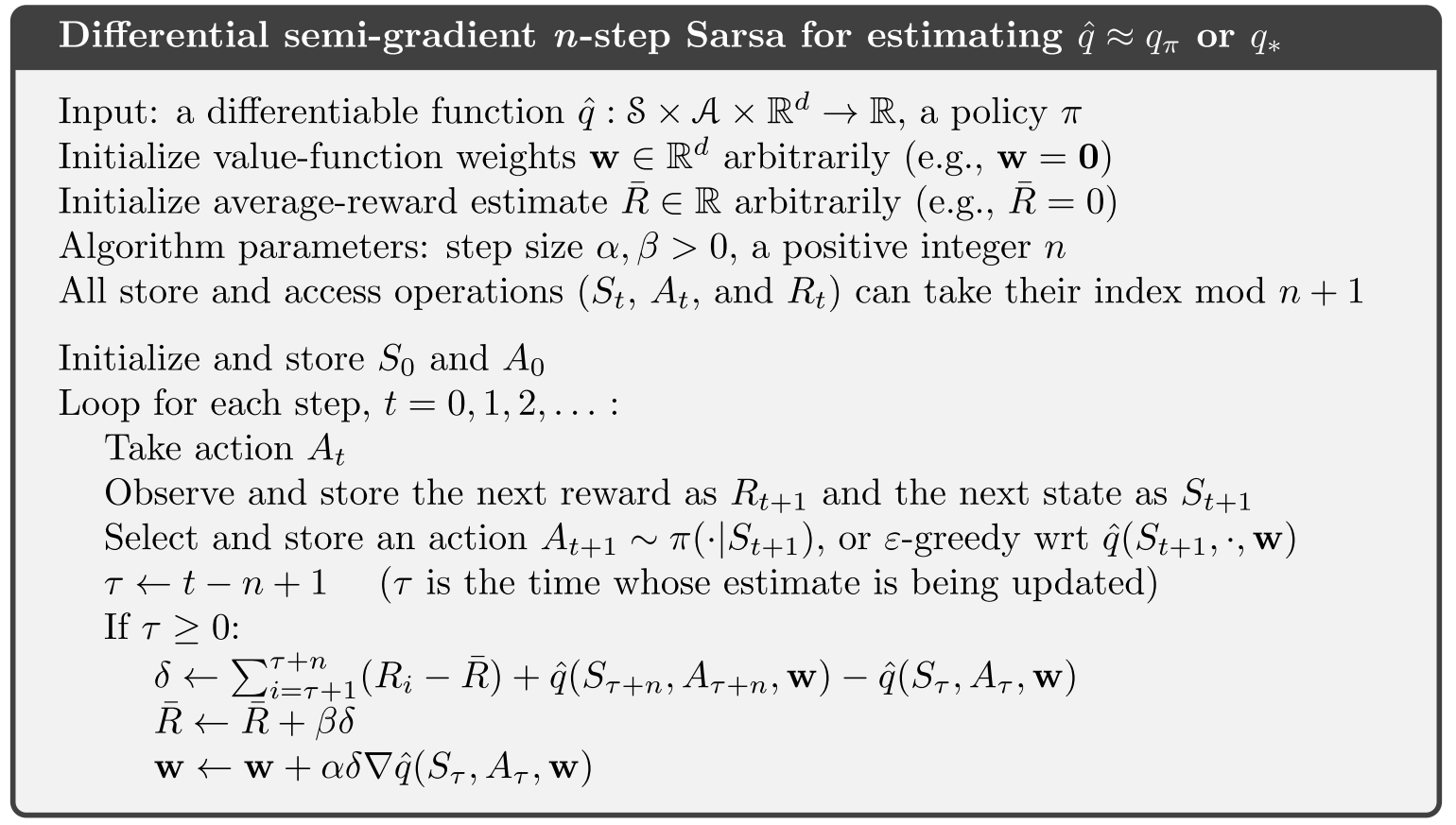 10.5 n-step Differential Semi-gradient Sarsa¶