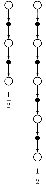 现在考虑多个 n-step return 的加权平均,只需权重和为 1,仍能用作 update target,如 \(\frac { 1 } { 2 } G _ { t : t + 2 } + \frac { 1 } { 2 } G _ { t : t + 4 }\) ,这种更新方式称为 compound update,其 backup 图如下