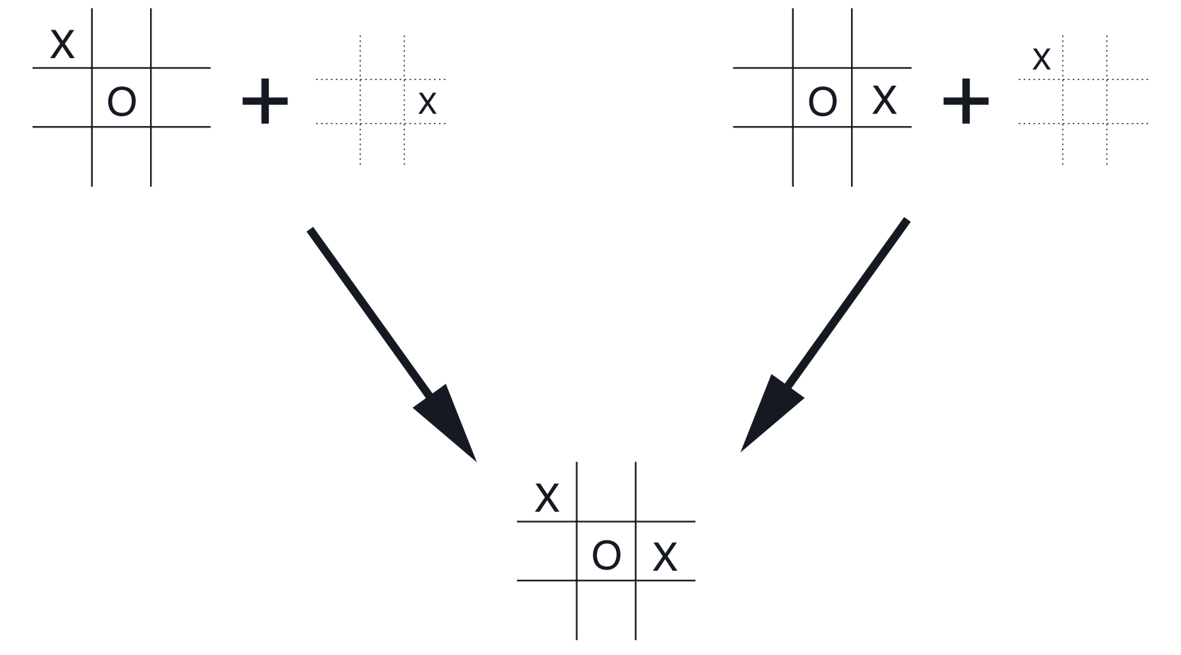 一些特殊情况下,我们可以在执行完行动后再去更新,比如下图这样的棋局,同一个局面可以由不同的情况达到,有着相同的期望收益。