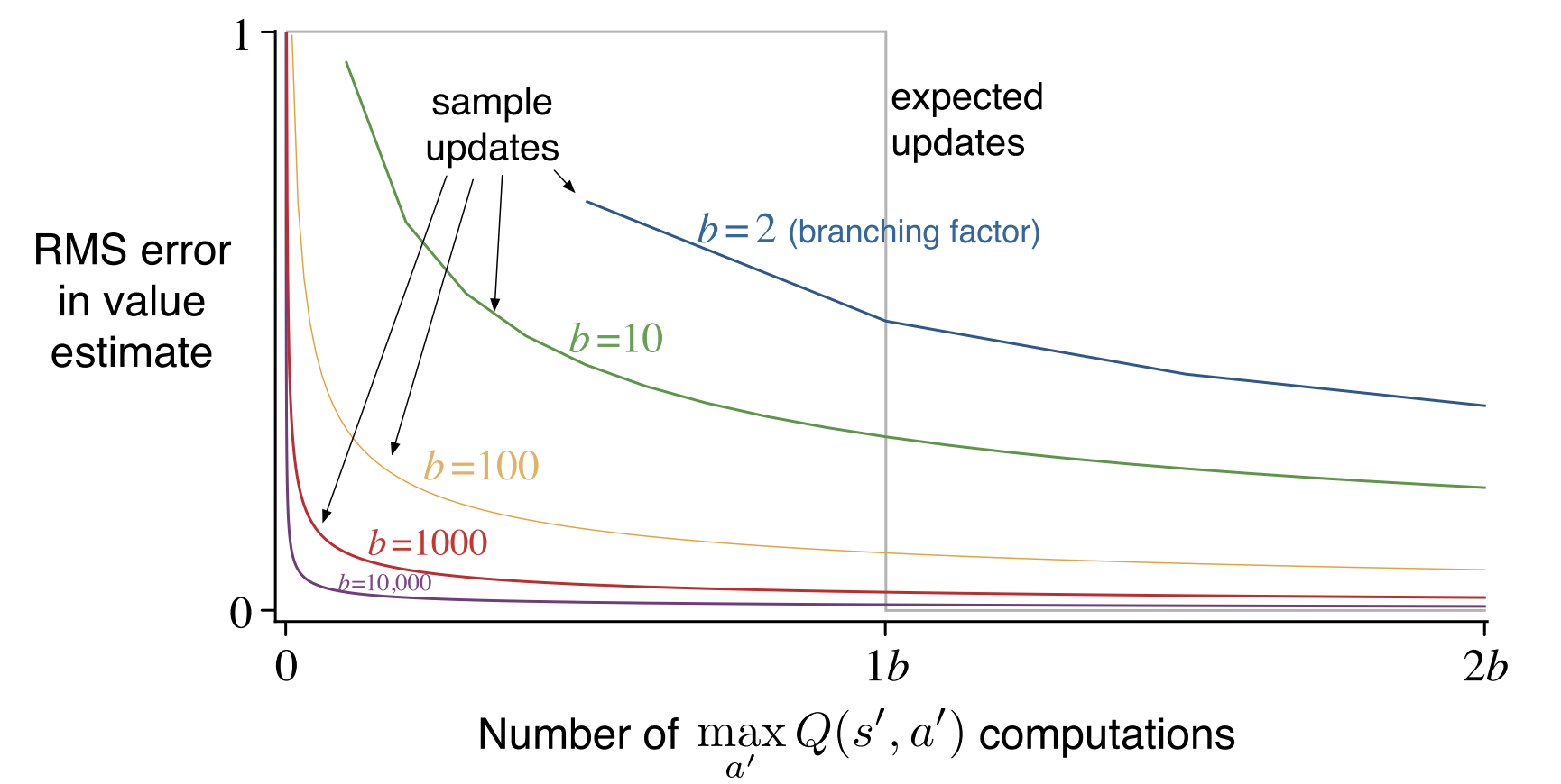 此外,expected updates 的计算量约为 sample updates 的 \(b\) 倍。