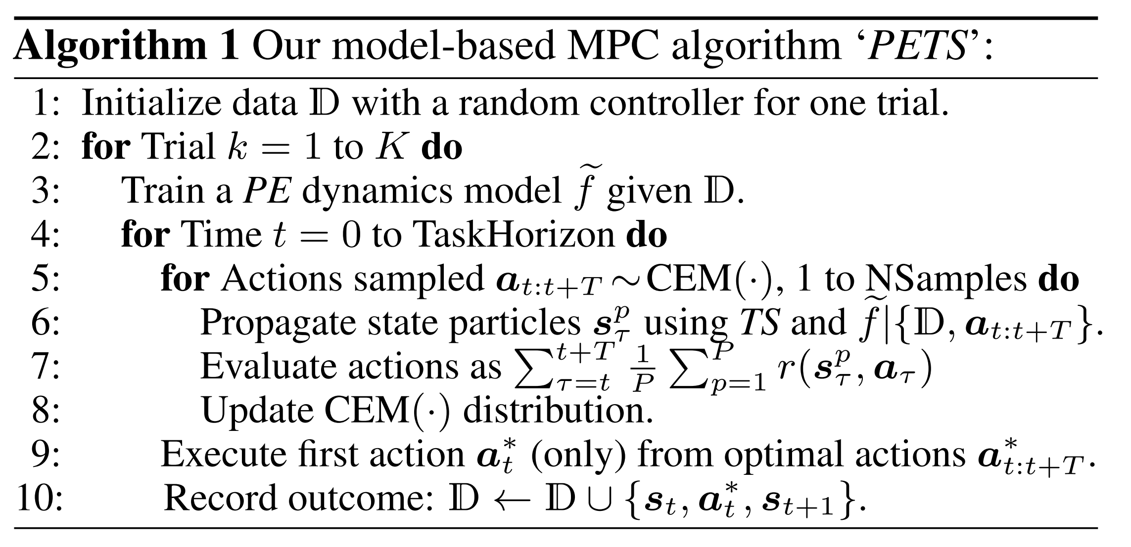 3. Deep Reinforcement Learning in a Handful of Trials using Probabilistic Dynamics Models¶