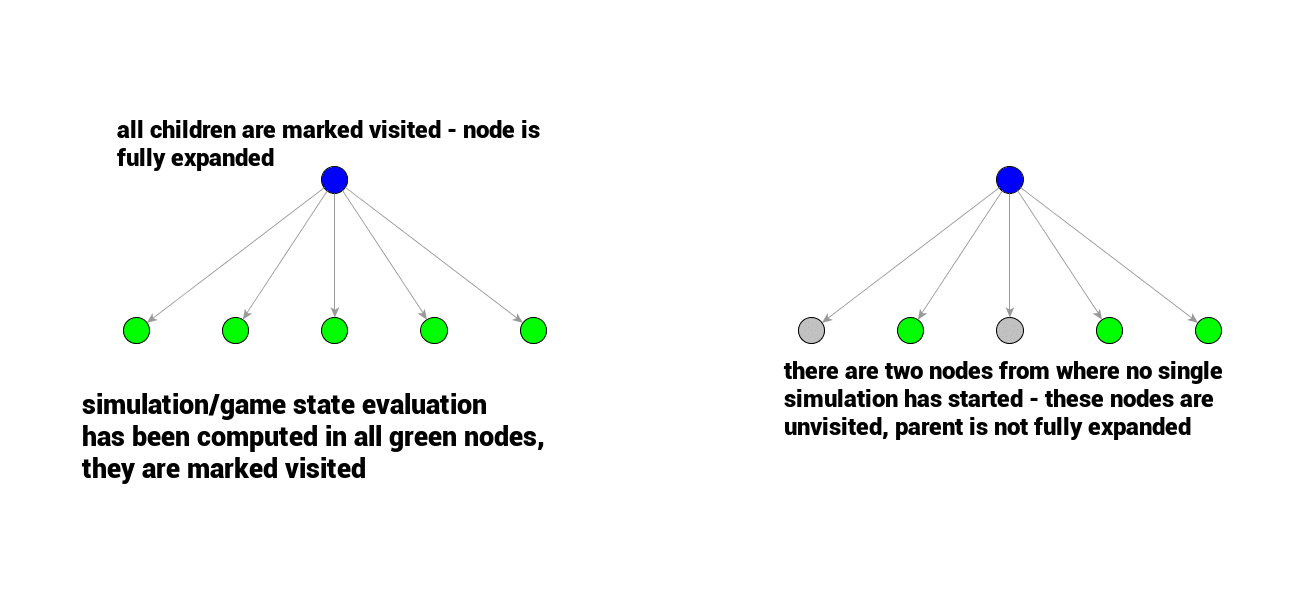 所有节点可以分为访问或未访问,如果某节点的所有子节点都是已访问节点,那么它就可视为完全展开的节点,反之未完全展开的节点。