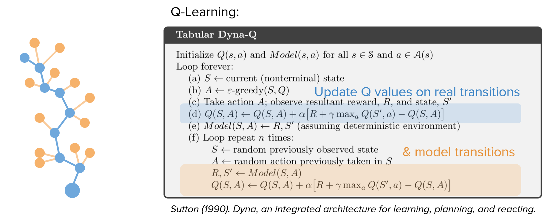 最简单直接使用model的方法,将真实环境数据和模型生成数据混合,然后执行model-free方法(可以看作是一种Data Augmentation)
