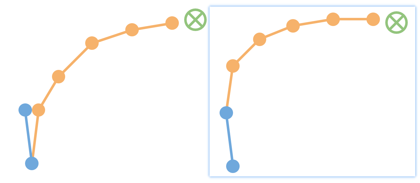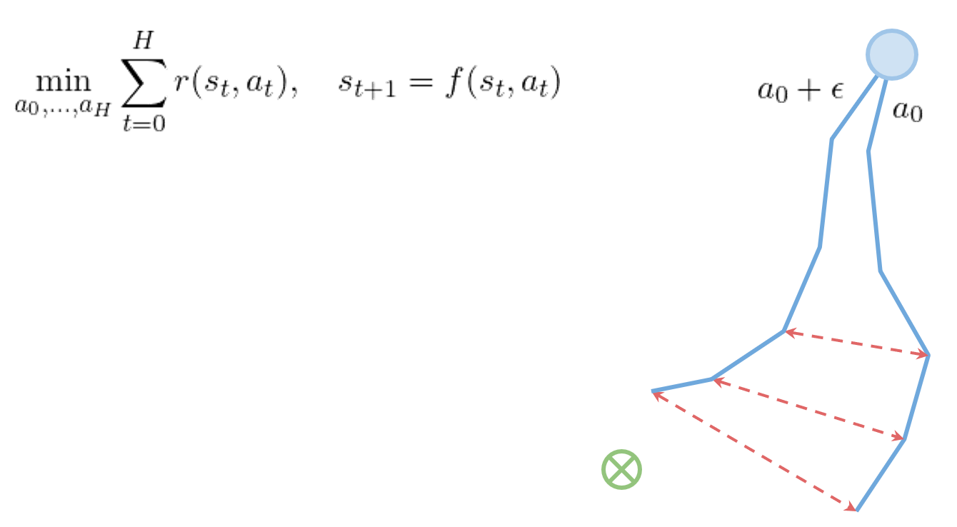 因此,如果执行初始action \(a_0\)时存在一个微小扰动\(\varepsilon\)(显然这也是很难避免的),那么planning时,你原本预期的rollout \((a_0,\ldots)\)和实际计算的rollout \((a_0+\varepsilon,\ldots)\)很有可能在后期存在非常大的差异,导致你错误地估计了当前状态下执行action \(a_0\)的收益,从而错误地更新了策略。