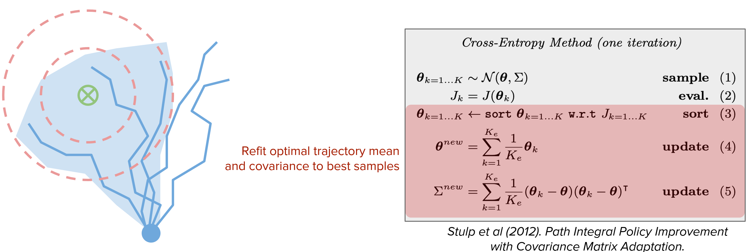 decision-time planning容易陷入局部最优,基于交叉熵算法(CEM)的理论保证,按照下图算法执行planning,可以更好地收敛到全局最优。