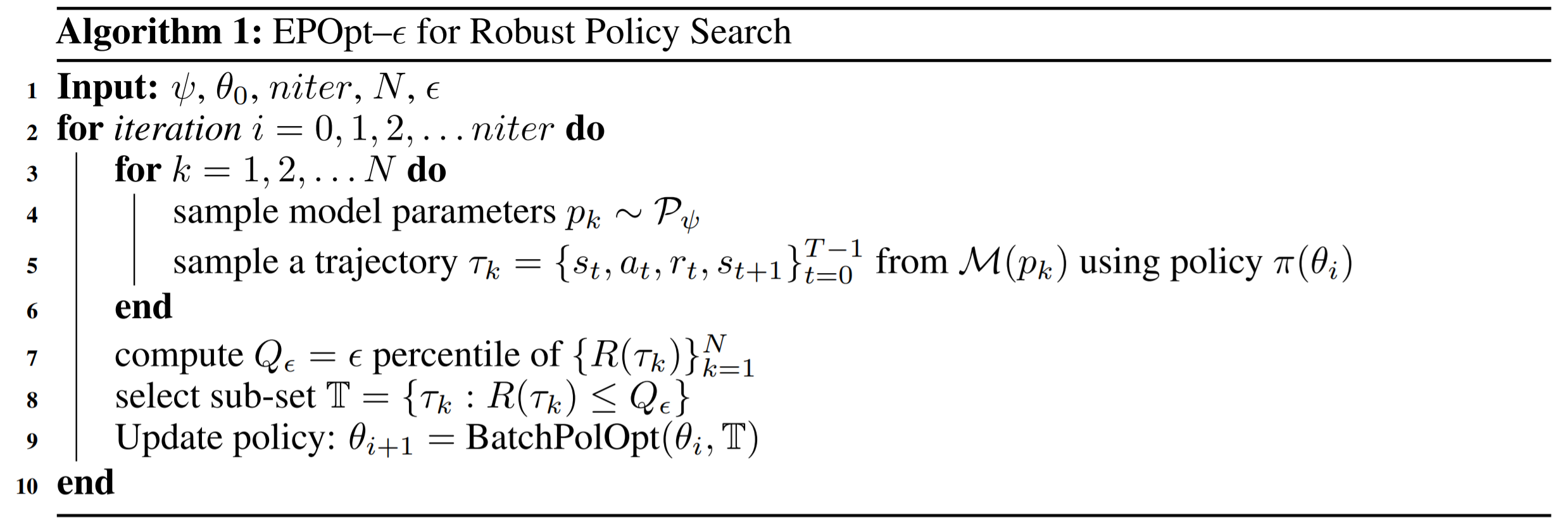 Rajeswaran et al (2017). EPOpt: Learning Robust Neural Network Policies Using Model Ensembles.