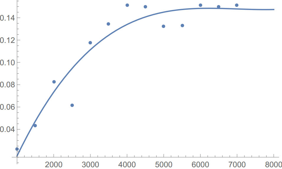 同时利用Mathematica,将软件的模拟结果进行了函数曲线拟合,得到如下图的结果